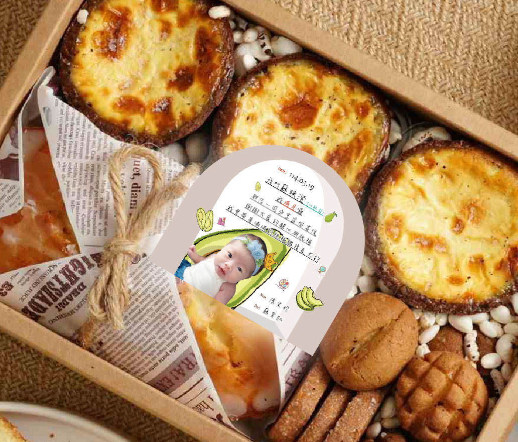 小寶貝暱稱叫作小酪梨,貼心的媽媽希望把這份喜悅分享出去的同時也不要造成親朋好友的困擾,所以把卡片升級成貼紙,卡片設計增加小公主愛漂亮的元素及小酪梨點綴。